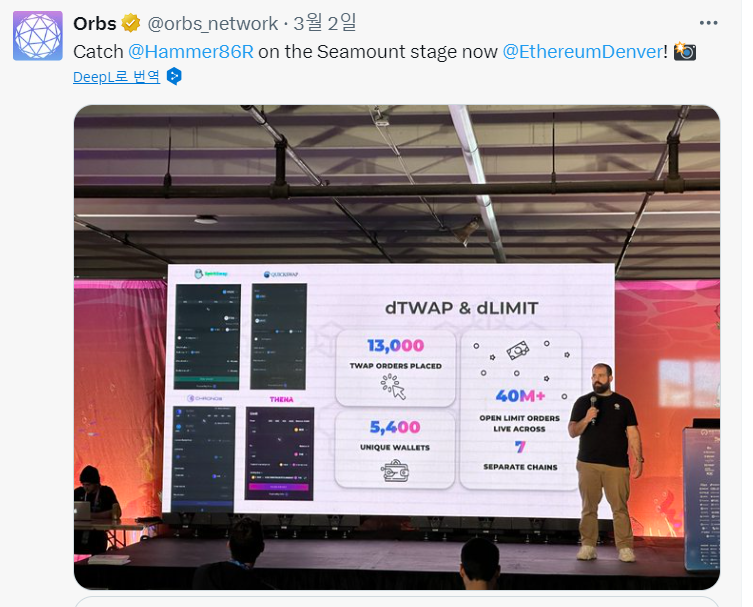 지난 주에는 오브스팀이 미국 덴버에서 열리는 이더덴버에 참여 하여 우리의 "란"이 오브스 L3 유동성 허브 프로젝트에 대하여 설명하는 세션을 가졌습니다. 이더뎁버는 이더리움 생태계를 확장 하기 위한 이더리움 컨퍼런스로서 매 해 열리는 가장 큰 블록체인 행사의 하나로서 자리매김 한 큰 행사 입니다.